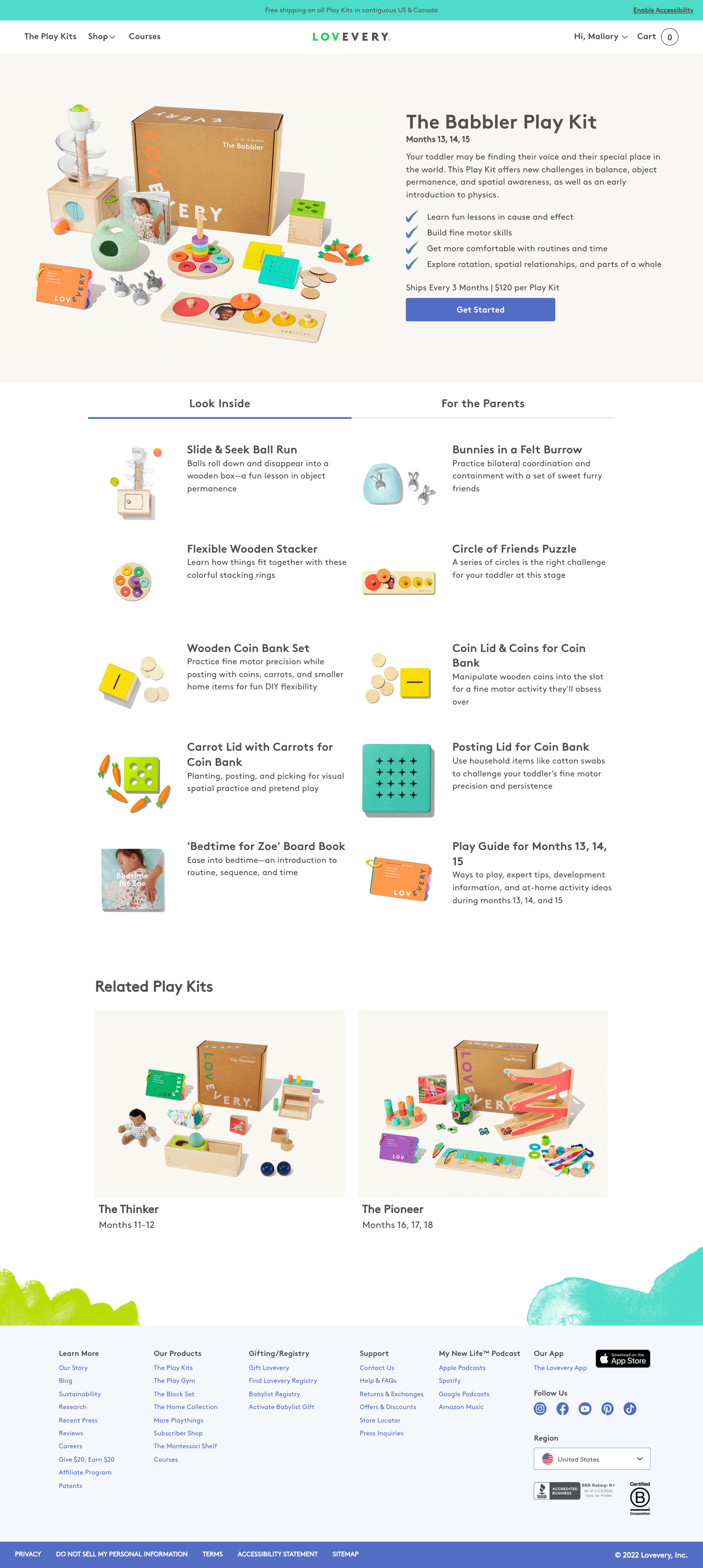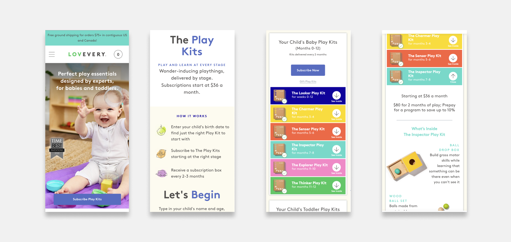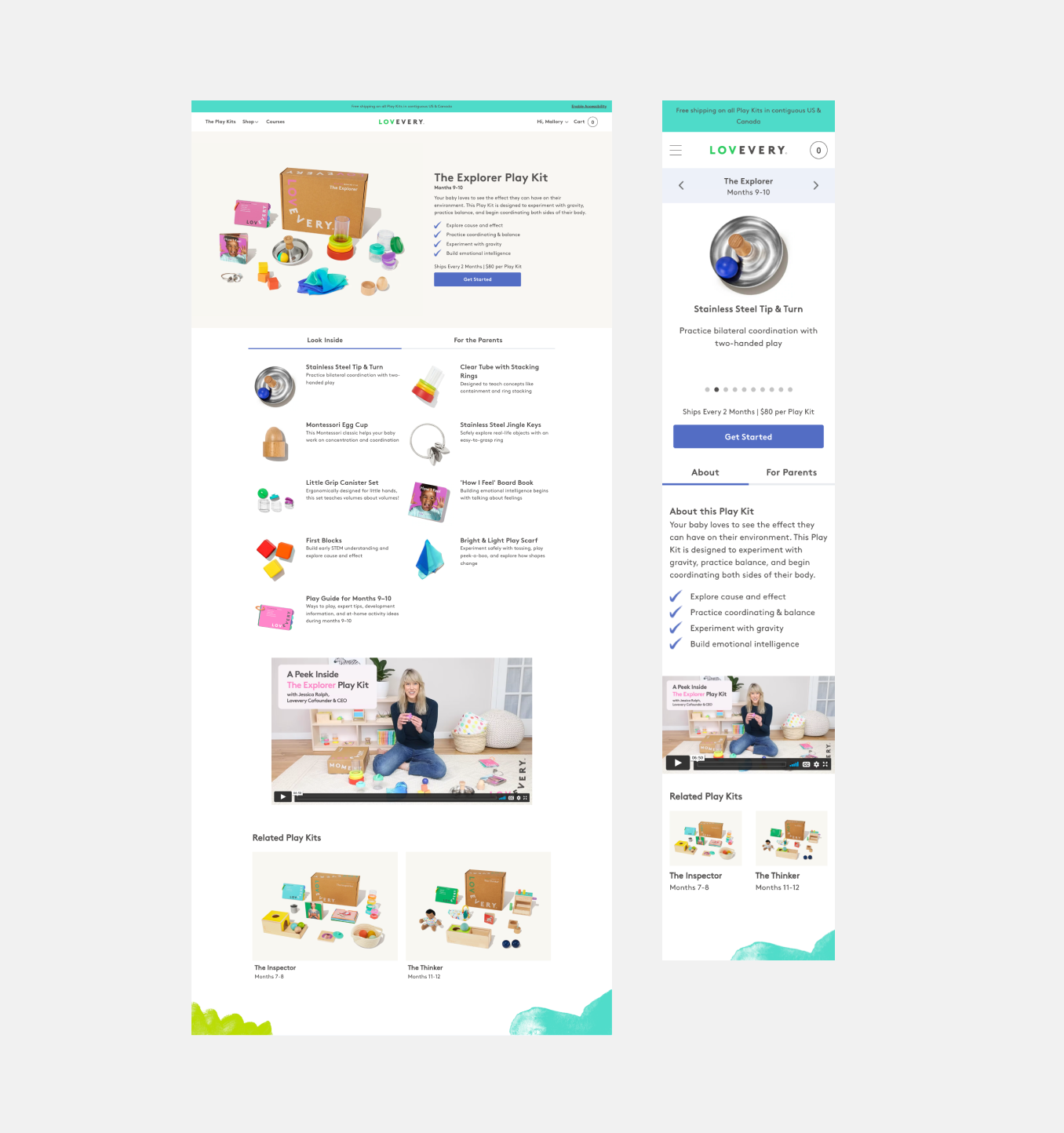 New Product Detail Pages: An excellent place to land paid traffic so we can begin marketing to specific stages more effectively. Desktop and Mweb are highly customized to emphasize how the products compliment one another and how each stands on their own to aid child development. Finally, a tab for parents so they can understand Play Kits has a whole-family support system.